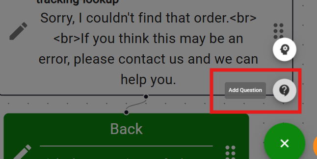 5. Back Button: All questions and intents automatically include a back button that links to the default question. To change where the back button goes, click the gray pen to open the editor.